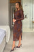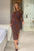 Girl in Mind Elodi Floral Embroidered Mesh Midi Dress- Brown