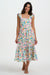 Embrace effortless summer style with the Estelle Midi Dress. Featuring a shirred back panel for comfort and a flattering fit, this dress is finished with delicate frill shoulders and a flowing tiered skirt. The vibrant tropical fruits, palms, and playful characters scatter across colourful checkerboard blocks on a light background for a lively, festive print. The Estelle is perfect for sunny days, picnics, or weekend adventures.
